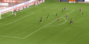 第40分钟,亚历山德里尼点球为黄海扳回一城,