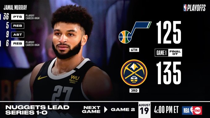 今天掘金的MVP!穆雷最后8分15秒砍20分对飚米切尔