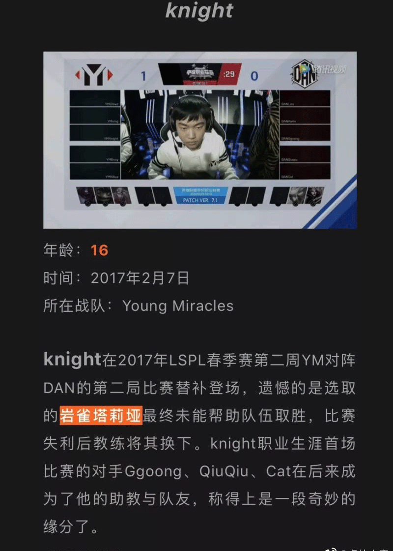 Knight在LPL第一个头是猫皇,当年JackeyLove韩服登顶第一第二就是Knight之类的!