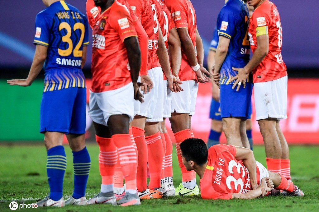 5?本场比赛,恒大的定位球防守十分有趣,在搭建人墙时,都会安排一名球员躺在地上,方便人墙起跳,这两名球员分辨是杨立瑜和钟义浩。