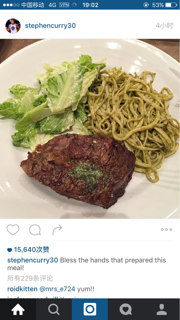 库里在instagram上晒出了自己即将享用的美食,小学生在家里果然没地位,只给吃面条配菜叶子就打发了![开心]也许您还喜欢:世界杯直播 亚洲杯直播 欧洲杯直播 足球直播