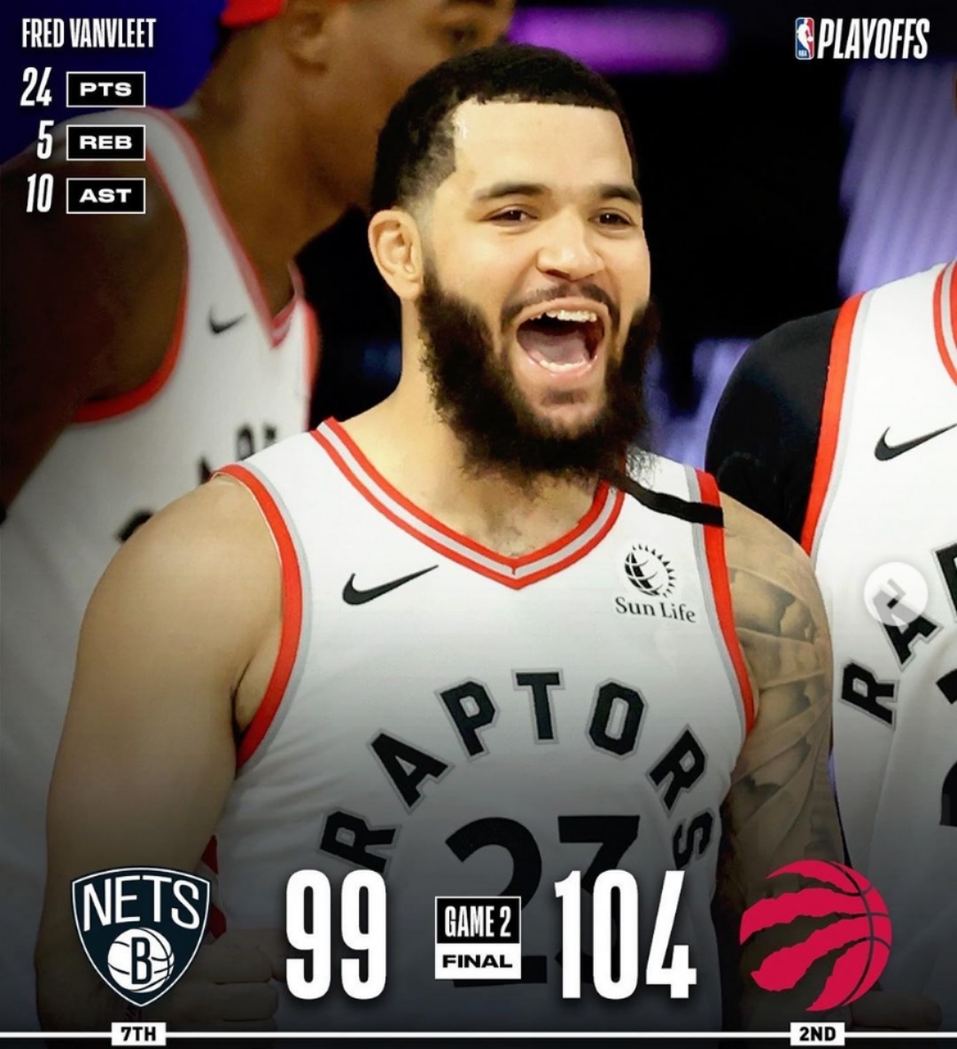 继上一场范弗利特拿到30分11助攻后,G2他再次拿到24分10助攻,帮助猛龙险胜对手。