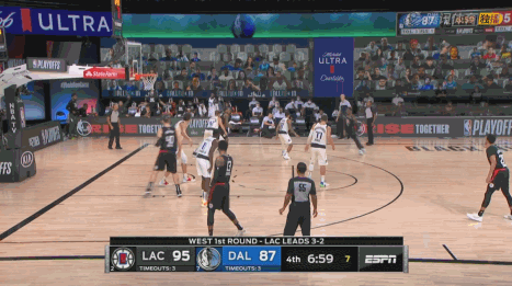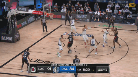 第四节下场时,独行侠迫近了比分,重新披挂上阵的小卡连得8分稳住局势!