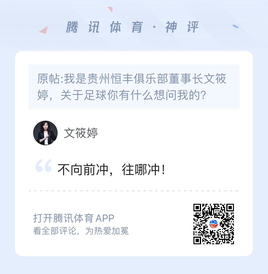 文筱婷:首先我们不是在玩足球,我们是在理想的运营贵州足球。另外,足球产业对于一个省份,一个地区而言,是一种机具社会责任心和公益性的投入,此外,中国足球需要成长,需要各个省份提供支援,撑起自己的小天地。