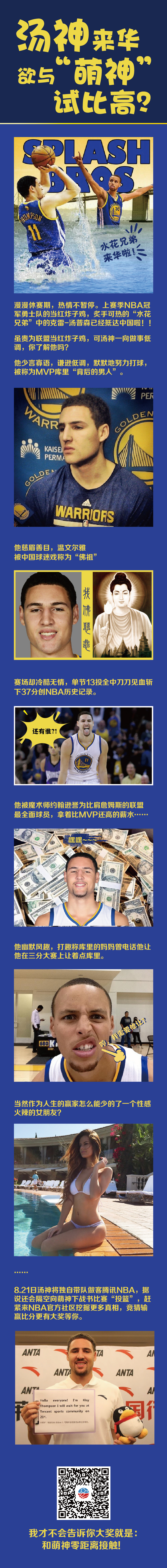 汤普森来了!作为总冠军双子星、联盟最优秀的得分后卫之一,汤神将在腾讯与大家见面!21日,汤神将零距离与腾讯社区网友互动,公布自己的罚球秘诀,并亲自指导球迷罚球!表现出色的球迷将能收获意想不到的奖品哦!偶像就在眼前,大家快来报名参加活动吧!活动细则:1、下载腾讯体育APP,关注腾讯体育社区,并关注腾讯体育...也许您还喜欢:世界杯直播 亚洲杯直播 欧洲杯直播 足球直播