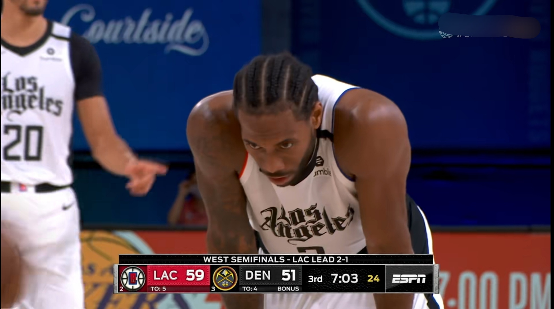 而在今天比赛过程中,解说席上也出现了较为有意思的一幕,当杨毅老师看到小卡频频弯腰扶膝盖时,他就提出疑惑,觉得小卡是不是累了。随后伦纳德一攻一传精彩表现,逼迫掘金队叫了个暂停,让我们一起来看看当时究竟发生了什么。