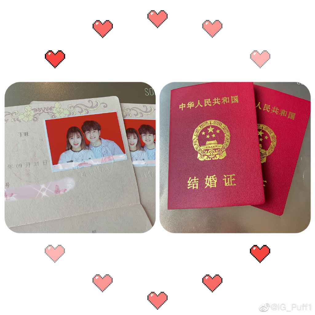 iG选手泡芙晒出结婚证,并发微博附上一段歌词: