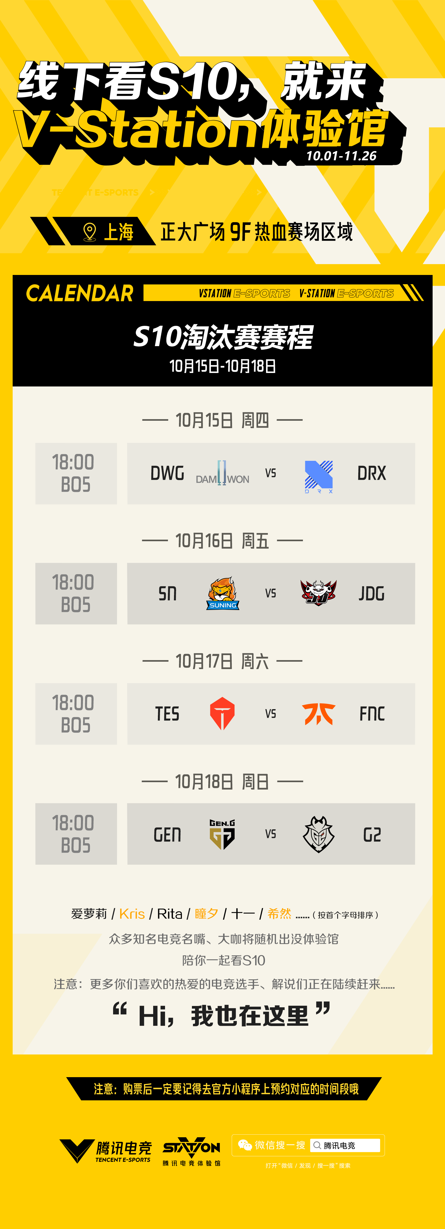 10月15日至10月18日,来上海正大广场9F【腾讯电竞V-Station体验馆】。