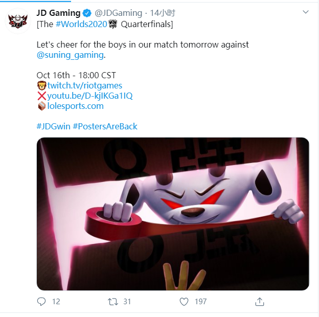 电商大战前 JDG发赛前海报 暗示SN打包回家.. 牛气冲天