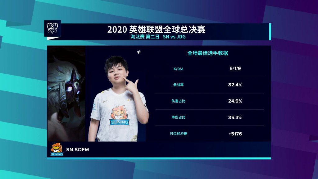 虽然Yagao拿下了JDG获胜的唯一一局MVP,但是并不能掩盖他在这场比赛中的碌碌无为。在首局使用招牌佐伊后,SN对Yagao做出了重点关照,要么Ban掉佐伊,要么给Angel抢下佐伊。在这种情况下,Yagao连拿加里奥和卡牌这两大支援流英雄,可是并没能将支援的效果打出来。尤其是在拿到卡牌后,几乎很少看到Yagao开大帮助某路配合击杀,更多的则是开大赶路或探照视野。如果Yagao能表现好一点,JDG并非没有机会击败SN。