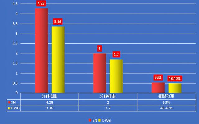 SN分钟插眼4.28个,高于DWG的3.36个;在分钟排眼上,SN分钟排2个眼,高于DWG的分钟1.7个;在排眼效率上,SN也是以53%的效率高于DWG的48.4%。