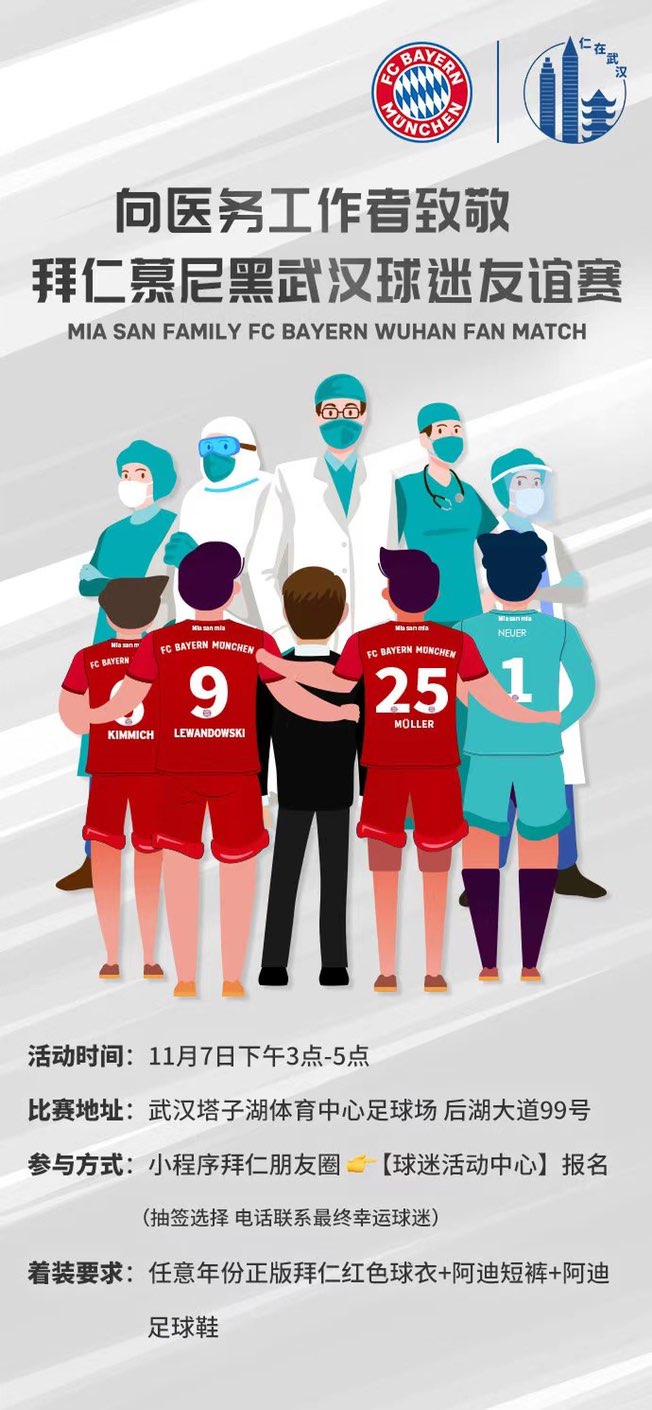 ??下午3-5?武汉塔子湖体育中心足球场?我们的球迷队将与武汉中心医院医生队进行一场特别的友谊赛