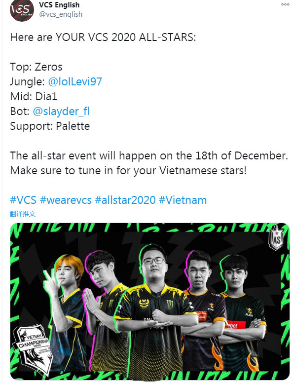 S赛结束之后,下一个官方赛事当属一年一度的全明星了。近日各大赛区的投票都在如火如荼的进行之中,我们LPL也不例外。而来自越南的VCS赛区,却已经于今日正式出炉了全明星的最终阵容。我们熟悉的打野选手Levi位列其中,另一位明星上单Zeros也再度入选。