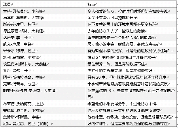 说到这,金州的休赛期应该被注意的还有他们并没有使用他们的需要缴税的中产特例。这是第一个意味着过去几个赛季一直在流水式花钱的管理层可能也开始有些顶不住了的标志。