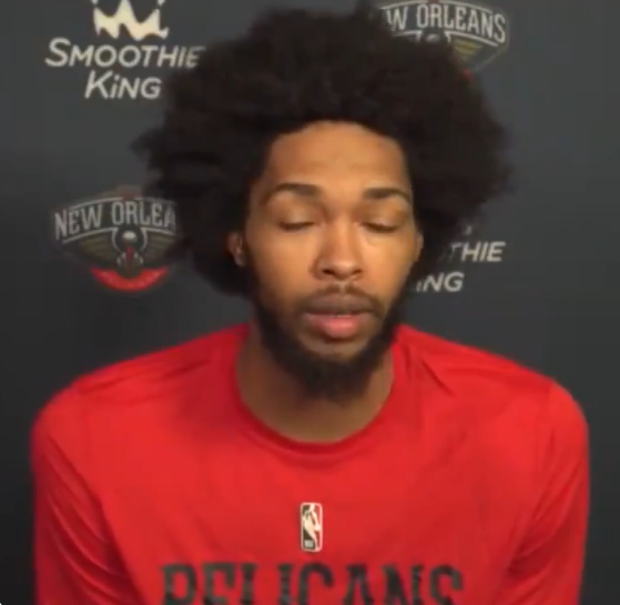 英格拉姆今天接受媒体线上采访,他的爆炸头发型过于引人注目。