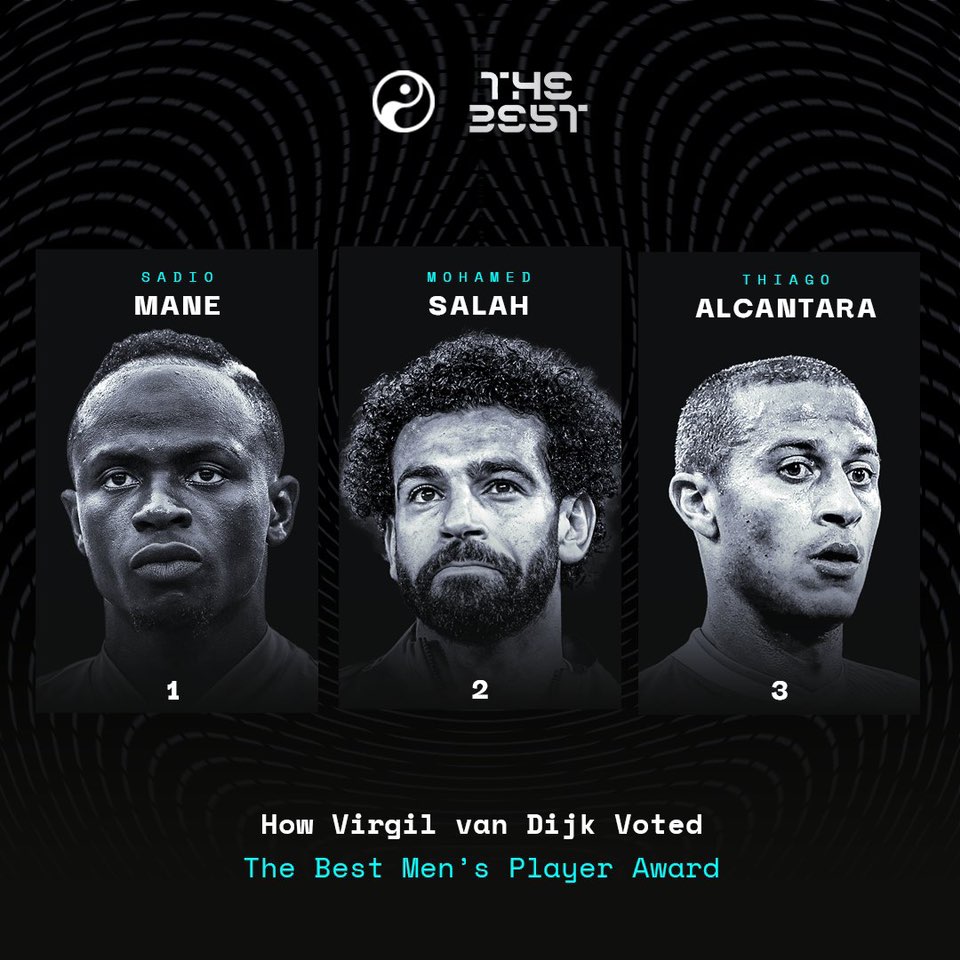 范戴克:马内萨拉赫蒂亚戈(全是队友)