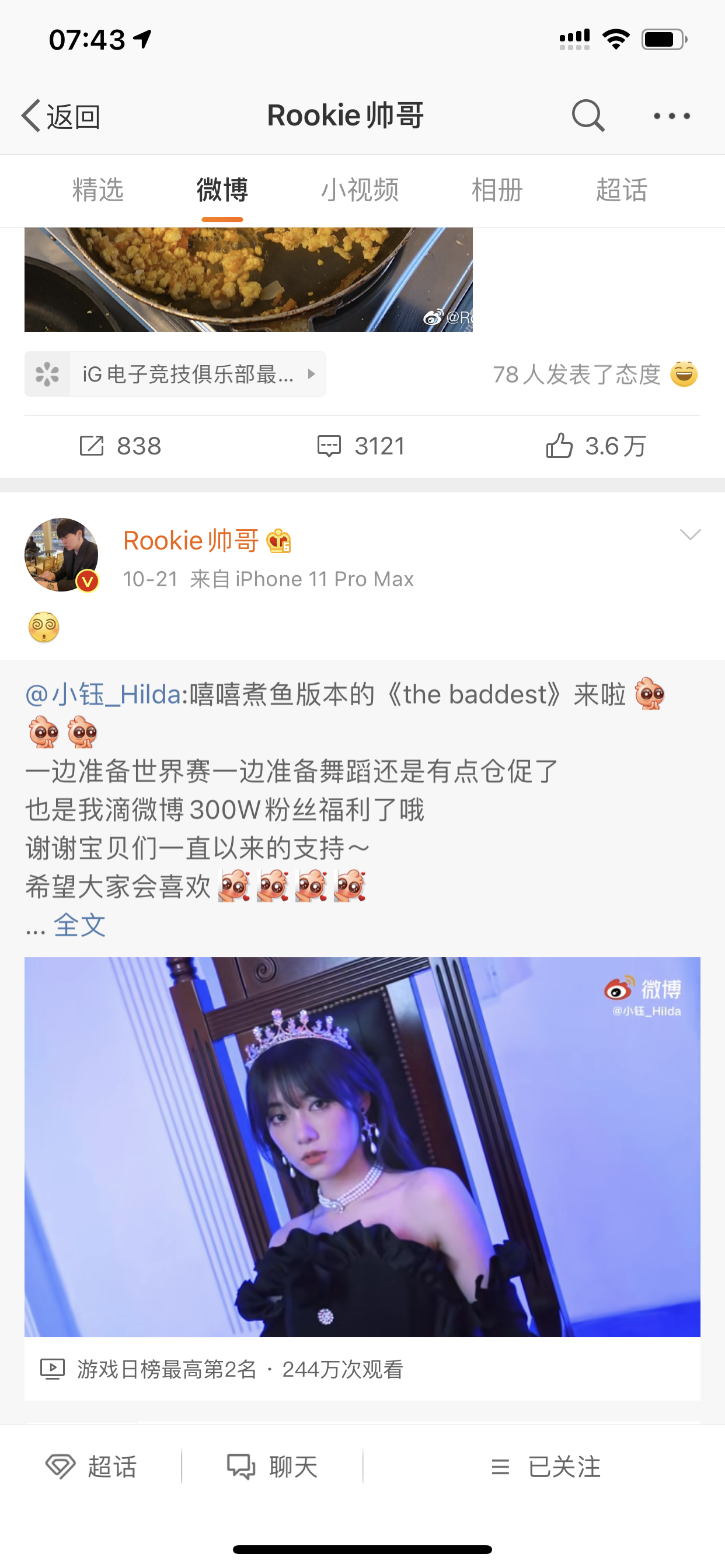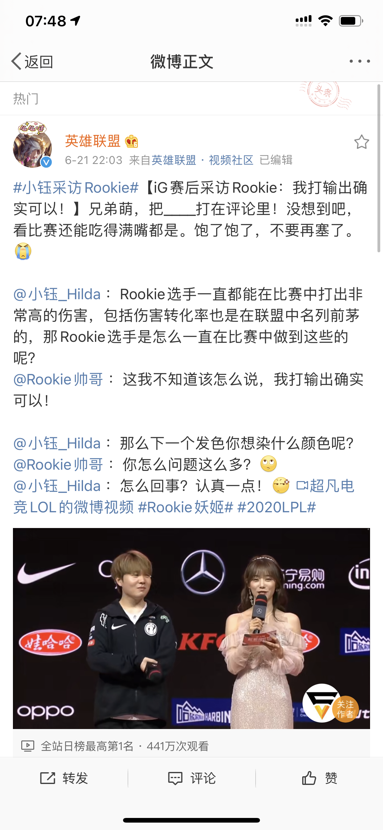 终于在Rookie宣布恋情之后,今年6月21日,IG?Rookie接受采访,主持人为小钰,网友众呼“等了很久这个采访了”
