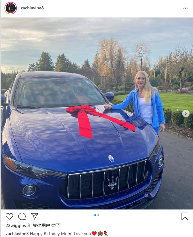 扣篮王拉文社交媒体晒照,送豪车给自己妈妈庆生~