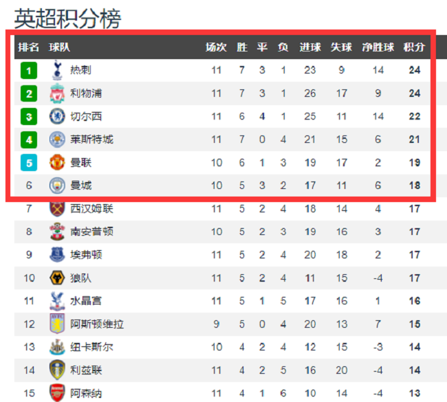 别人不知道,反正我每次都特别喜欢看积分榜的变化情况,前两轮,我们刚刚看到英超传统强队纷纷回归,仅仅10来天的功夫,积分榜再次发生翻天覆地的变化。