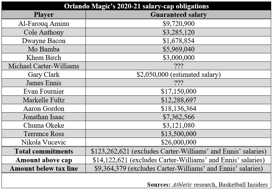 从长期薪资的角度来看,仅有的可取之处是恩尼斯的合同只有一年,魔术队在下赛季握有培根和克拉克的球队选项。换句话说如果魔术队在明年自由市场开启时不想留他们的话,那这三位就不会再出现在球队账单之上了。