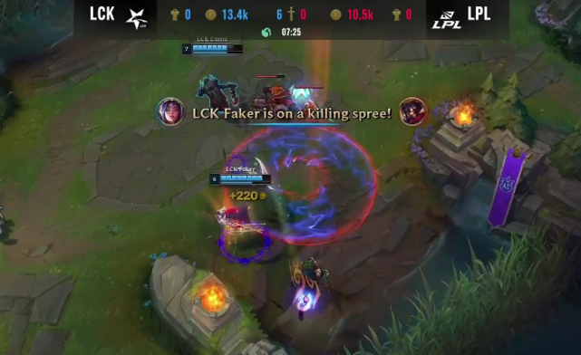 来到游戏中期,LCK全员装备都有着巨大领先,每个人都能进行天秀操作,尤其是Faker的刀妹,活跃全场。20分钟刚过,LCK就收下大龙!22分钟收下火龙魂!终于在26分钟,LCK在野区抓住机会,不再折磨,一举团灭LPL!顺势一波结束掉比赛!LCK收获三连胜!