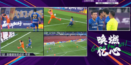 第65分钟,苏宁队海米提右路传中,球打在宋龙身上,随后疑似弹到手臂上,主裁石祯禄响哨后,经过长时间的跟VAR裁判沟通,最终没有判罚点球。这个过程持续了将近4分钟。
