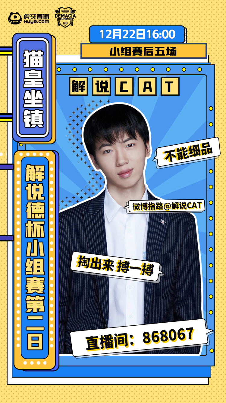 德杯赛程仍在紧锣密鼓的进行之中今天轮到C、D两组的队伍们将围绕出线名额展开争夺!经过了昨天的比赛相信他们对于新版本也有了属于自己的判断!盛况对决两位专业解说:赵志铭、Cat怎能缺席?今天他们将接力为大家解说德杯赛程!快来虎牙直播为你支持的队伍加油吧~虎牙官方直播间:660000赵志铭直播间:528111Cat直播间:868067...