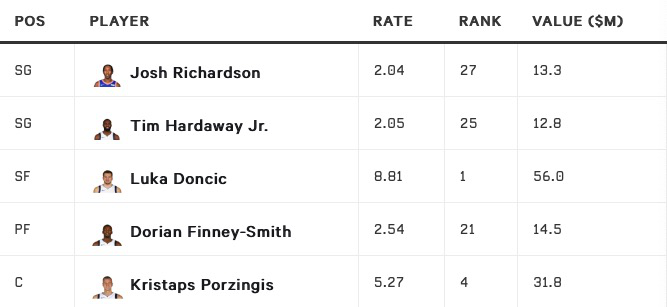 至于防守嘛……达拉斯上赛季防守仅排在联盟第19位,在季后赛对阵快船的G5中甚至丢了154分。虽然他们很少犯规,但是在制造失误方面联盟垫底,同时也无法利用失误得分,虽然尺寸不错,但是他们在篮板和干扰投篮方面也做得不尽如人意。