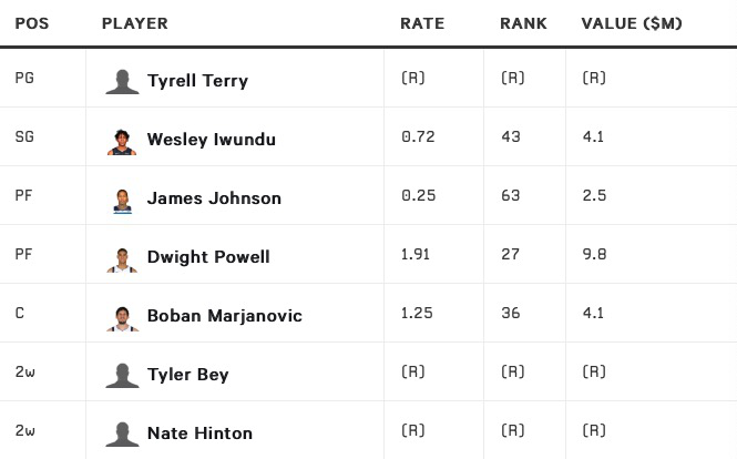 德怀特-鲍威尔 | 大前锋 | 跟腱断裂的攻框手,正在恢复 |