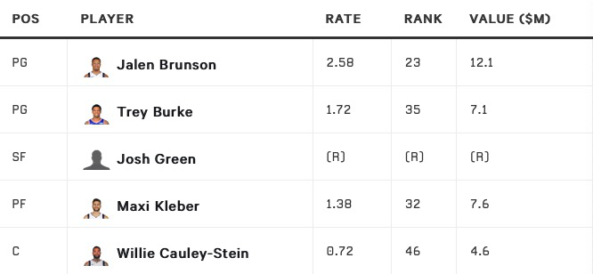 杰伦-布伦森 | 控球后卫 | 缺席季后赛的第二进攻创造者 |