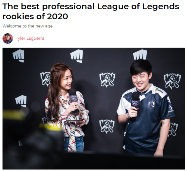 各位同学大家好,我是爱搞电竞的悠米酱!众所周知,随着时代的发展,每年都会有一些新人选手登上职业赛场。作为新人选手,他们虽然没有大赛的经验,但是有着超强的反应。不过这也不乏一些出道就十分老成的强势新人,譬如S8时期的JackeyLove,第一年登上LPL就率队夺得了S赛冠军。今年也有许多实力强劲的新人选手,近日外媒Dot Esports就评选出了2020年LOL最佳新秀,其中有LPL的两名选手入选,我们一起来看看吧~