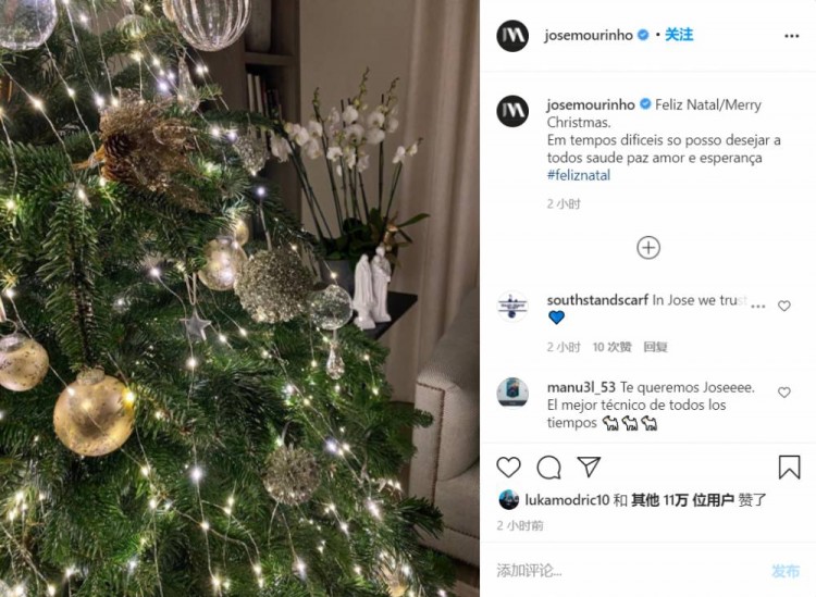 北京时间今天凌晨,热刺主帅穆里尼奥更新了社交账号,祝福大家节日快乐。他写道:“大家圣诞快乐!在这个困难时期,愿所有人都生活在爱与和平中,永远满怀希望。”