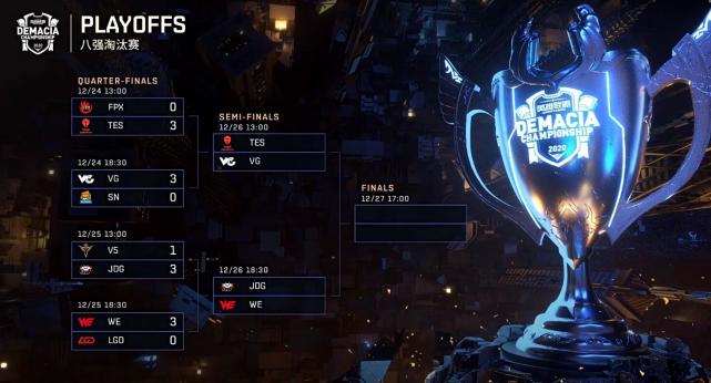 随着德杯四强的产生,12月26日将会迎来两场半决赛的交锋,分别由TES对阵VG,JDG迎战WE,这四支队伍都是全主力阵容,相信这两场比赛会非常精彩!