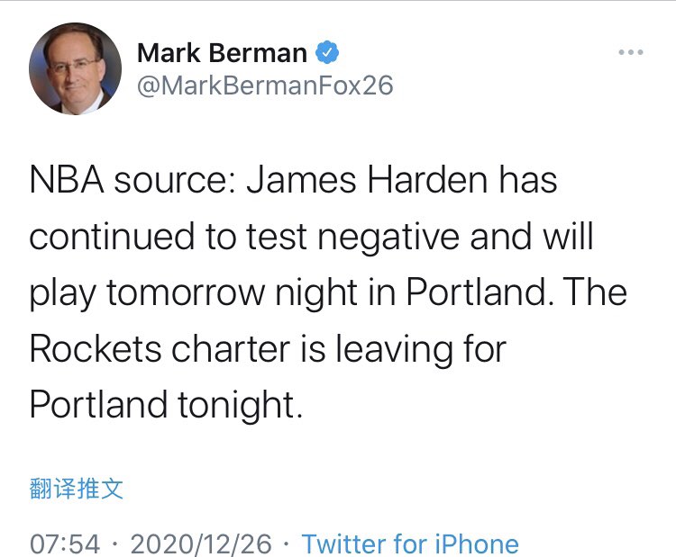 火箭其余球员哈登、努瓦巴、豪斯、塔克、伍德、布朗、泰特、卡博克洛、托马斯九名球员满足比赛球员人数,将可以出战明天与开拓者的比赛。