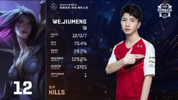 在今日的首局对抗中,WE的AD选手jiumeng选出了薇恩,尽管输掉了这局比赛,但他依然有很多亮眼的操作,这个薇恩,有没有让你想起Uzi的薇恩绕后,又或是薇恩五杀?