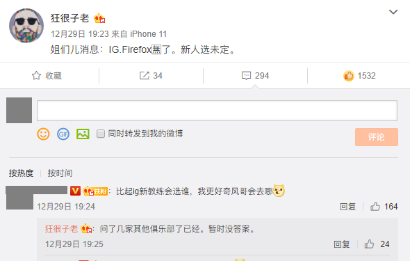 知情人爆料:iG.Firefox连接失败 新教练人选未定