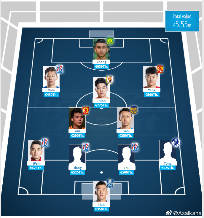 中国U23球员最有价值11人?
