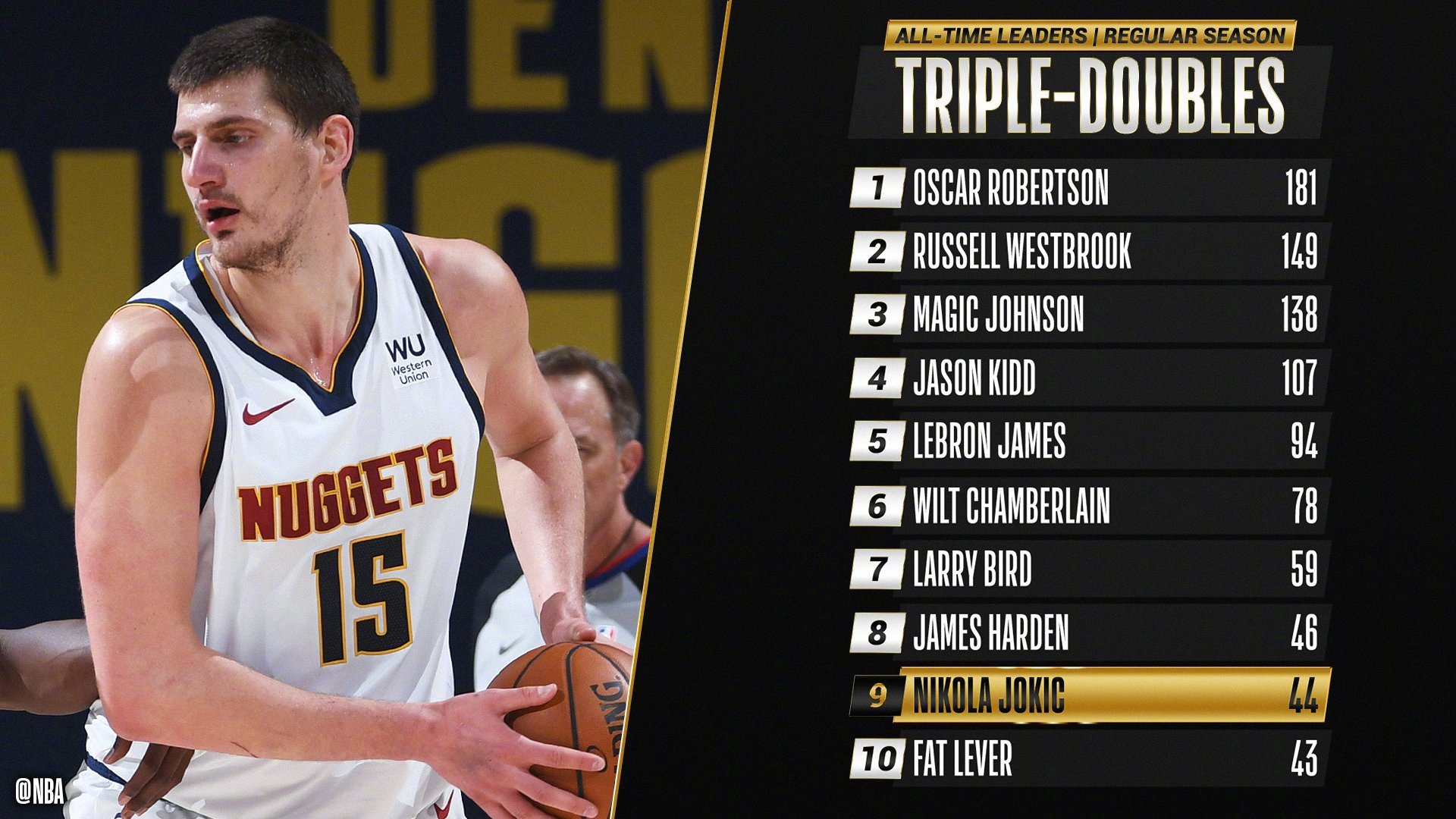 掘金今天115-125输给国王。约基奇连续两场砍下三双,本赛季第三次三双,生涯三双数来到44次,升至历史三双榜第九位,同时也成为掘金队史第一。?