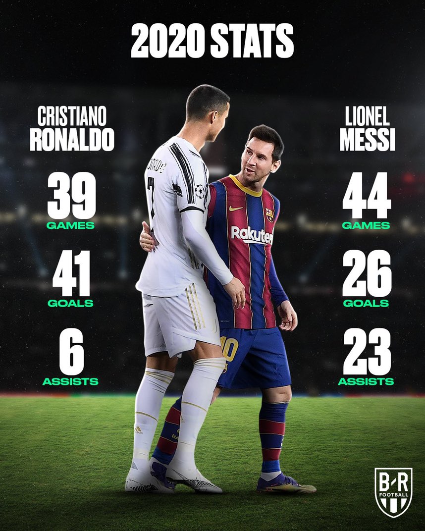 2020年,C罗39场比赛,41球+6助攻。?梅西44场比赛,26球+23助攻。?C罗马上36岁了,梅西奔34岁了,足坛双骄数据依旧强势。夕阳下的奔跑,我们的青春还在。