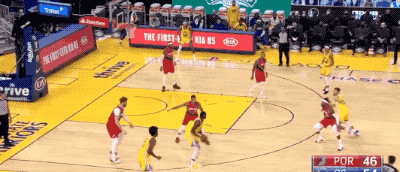 1月1日,开拓者和勇士的赛季第一次交锋,利拉德兵不血刃拿下了34分8助攻,助力开拓者25分大胜,库里则又一次早早地裹着毛巾落寞的坐在VIP席上近距离「欣赏」队友们在垃圾时间的整活儿表演。