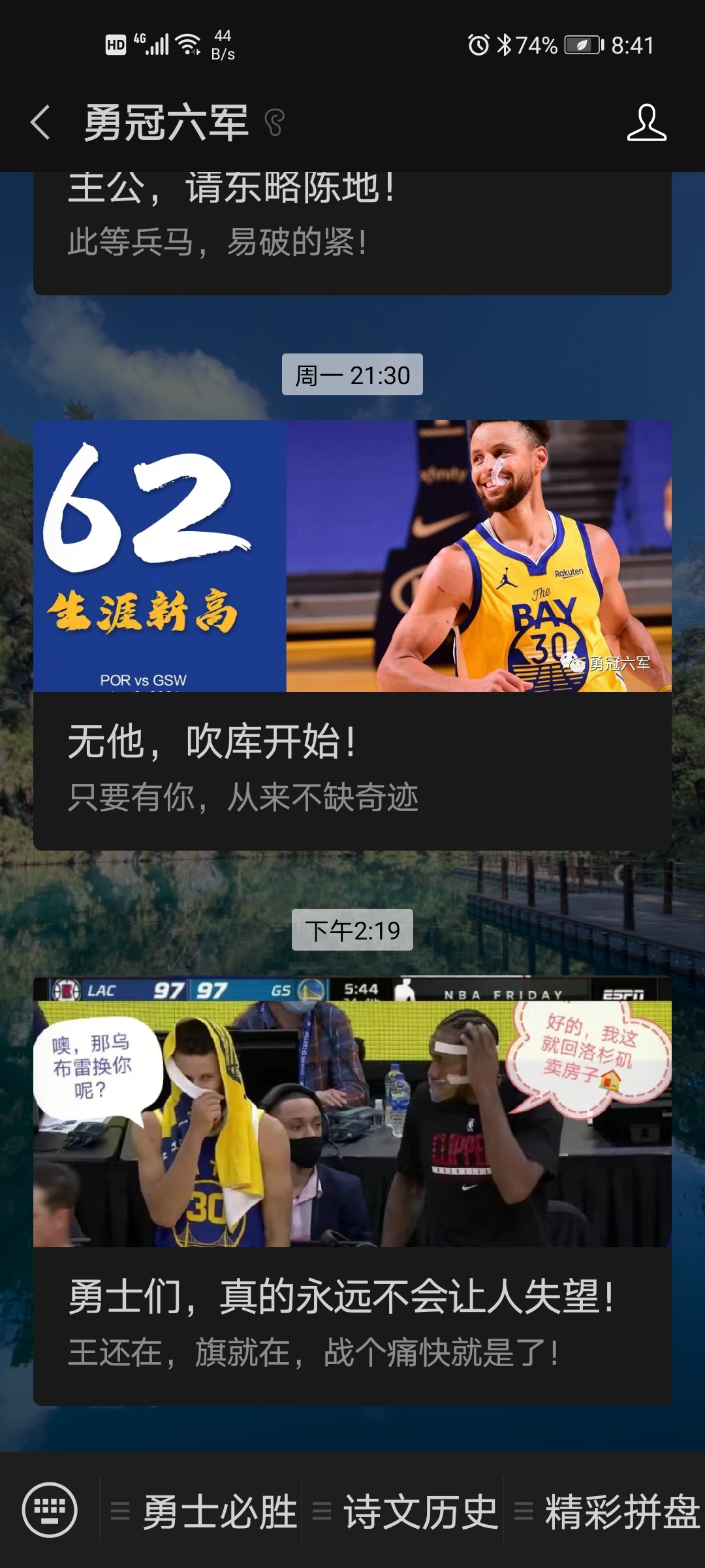 其实,这就和我们的生活一样啊。这就是为什么我会说,他们越来越像生活中的我们了。在生活的磨砺中,也许我们拼尽了全力,想尽了办法,最后却发现,结果并不尽如人意。或受限于种种奇葩的条件,或由于某种不知名的原因,如同一盆盆凉水,冲刷着我们心头的热血。我们可以有短暂的错愕、愤怒、发泄和消沉,但完成情绪的重塑之后,库里那阳光般的微笑依然会照进我们的心里。谁不艰难呢?再难能难过一盯四联、全场包夹吗?他们都没有倒下,我们又岂能认输?做每一位生活中的勇士,这,就是库里与我们的约定;这,也是我们与勇士的共鸣。