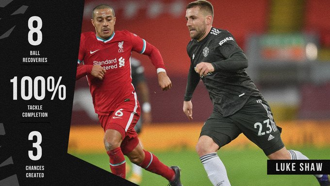 双红会卢克肖数据:8次夺回球权,100%抢断成功率,创造三次机会