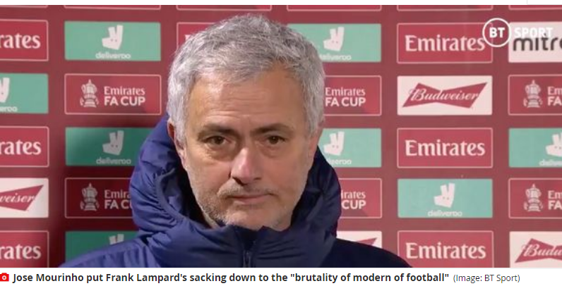 穆里尼奥:兰帕德不只是我的同行,他也是我生涯中很重要的人,我很遗憾他被解雇,但这就是残酷的现代足球,只要你成为主教练,这种事早晚要出现在你身上