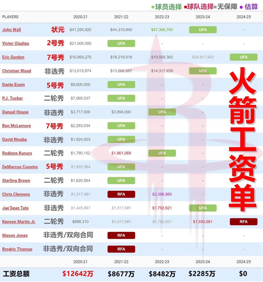 如果明年不执行科鲁兹的合同,薪金空间将进一步扩大。继续支持火箭