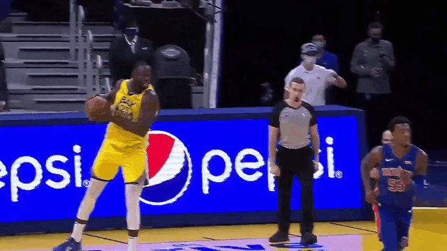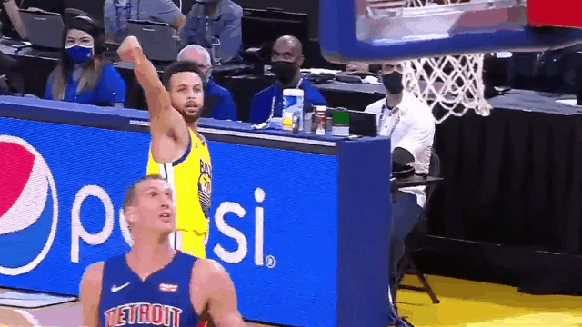 勇士对战活塞的比赛中 库里的三分刚刚出手还没进框呢