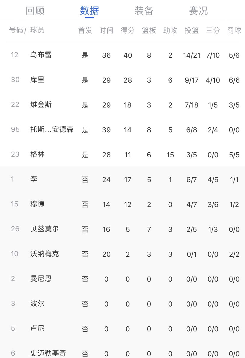 #乌布雷40分勇士大胜#