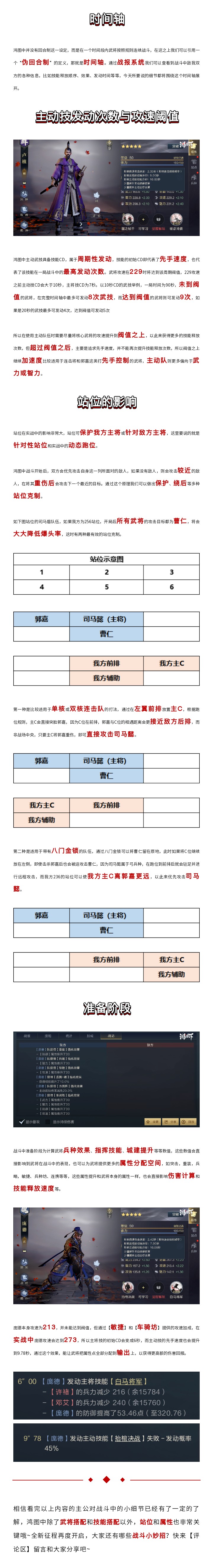 众所周知,鸿图世界的战斗基本以武将对战为主,在对战过程中,能够影响战斗结果的主要是阵容、武技、兵种、属性、站位。除此之外,时间轴和战斗机制也是影响战局的关键因素哦!为帮助主公们更好的征战S3赛季,小图今天就来带领大家一起研究时间轴相关的几个细节~
