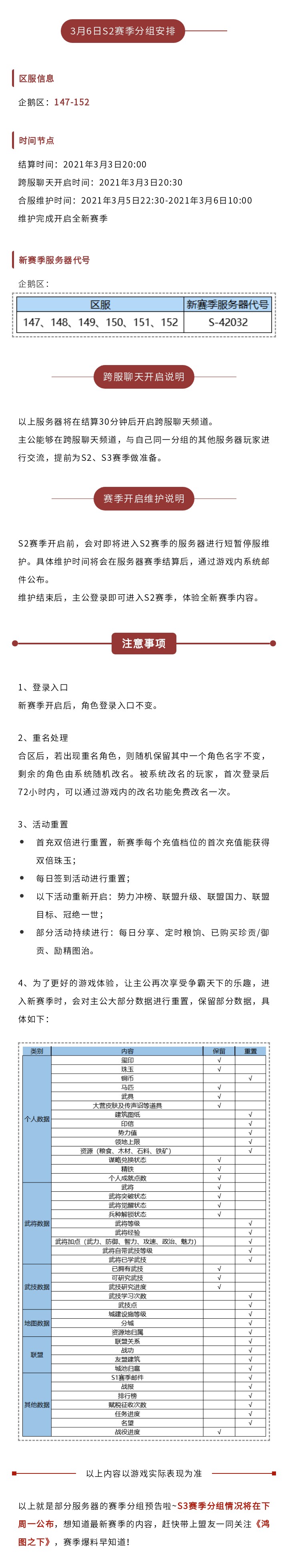 感谢各位主公对《鸿图之下》的喜爱与支持,本次预告涉及目前正处于S1赛季的区服:企鹅147-152区。
