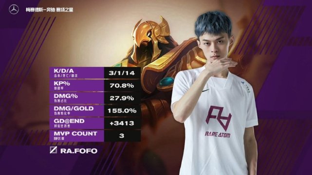 在RA和OMG这场交锋中,本以为RA会轻松获胜,没想到OMG打得非常顽强,第二局依靠熟悉的阵容稳稳拿下一分。FoFo这三局比赛发挥都非常亮眼,第一局的卢锡安对线期直接打崩了Wuning的辛德拉,团战操作输出拉满,碰上脆皮基本上就是一套带走的事情。决胜局拿到招牌沙皇后,FoFo的大招回推更是成功致胜关键,几波团战都感觉OMG要打赢了,结果FoFo的沙皇屡次开出好团,配合队伍完成收割。正如长毛老师所说:FoFo这个沙皇玩得和诡术妖皇一样,令OMG非常头疼!
