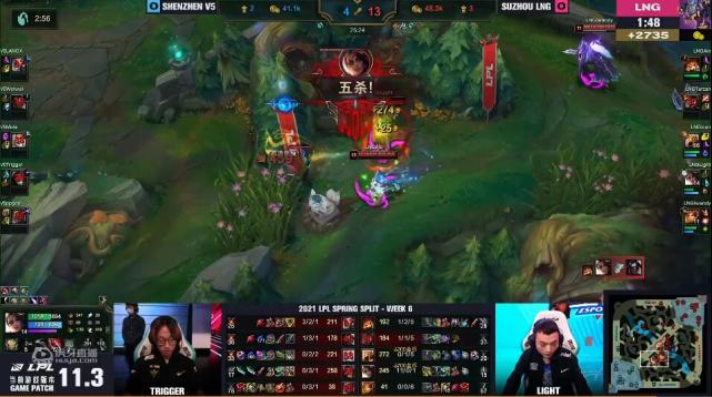 Trigger上一次发挥非常出色,结果这场对上Light就吃瘪了,在双方的下路对拼中,灯皇连续两局占据上风。对线期压制,团战疯狂收割,第一局操作莎弥拉豪取五杀,帮助队伍奠定胜局;第二局的霞再次成为赛场获胜关键,最后一波团战三杀帮助LNG拿下胜利。灯皇在这个春季赛发挥非常亮眼,只要LNG的上路能够稳住,他们还是有很大机会冲击季后赛的。